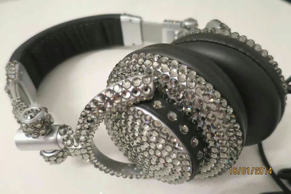 אוזניות של DJ''s האולמיים,הדגם החדש,פלסטיק משופר בחיבור המפרק לקשת האוזנייה.אוזניות מצופים באבני SVAROWSKI BLACK DIAMOND מקוריים!!! הזמנה אישית,עבודת יד,באריזה מקורית!מחיר לאוזניות בלבד בקילומבו-₪980!!